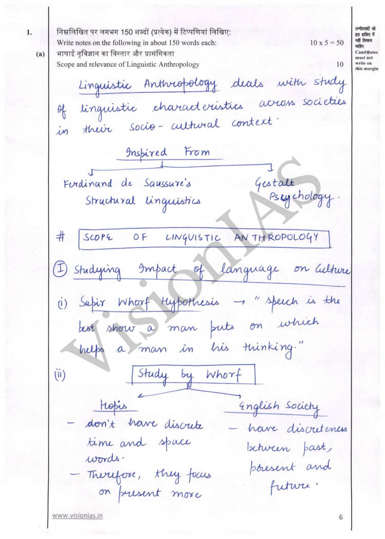ANTHROPOLOGY OPTIONAL UPSC CSE 2025 | VISION UPSC TOPPER COPY ENGLISH MEDIUM
