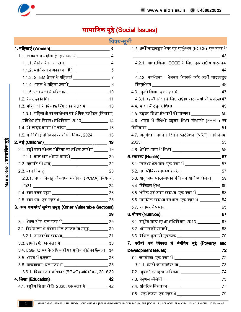 Vision Ias Social Issues (सामाजिक मुद्दे) Mains 365 August 2022 To May 2023 Xerox Hindi Medium