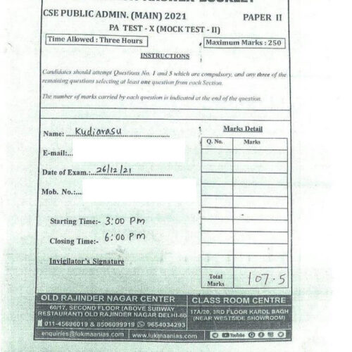Lukmaan IAS Topper Copy Public Administration By Abhishek Ranjan ( Air 543) English Medium 2021
