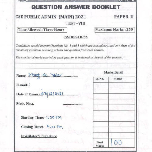 Lukmaan IAS Topper Copy Public Administration By Manoj Kumar Yadav (Air 381)English Medium 2021