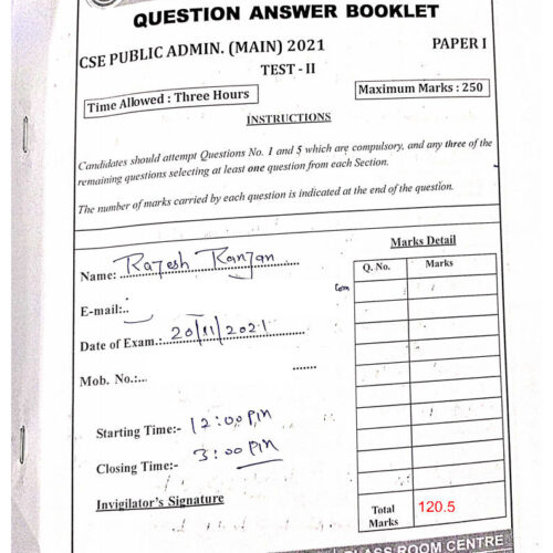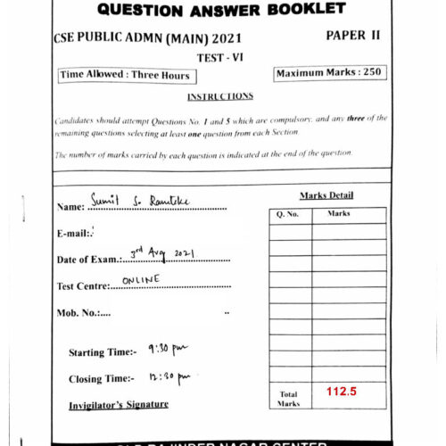 Lukmaan IAS Topper Copy Public Administration By Sumit Kumar Thakur(Air -263) English Medium 2021
