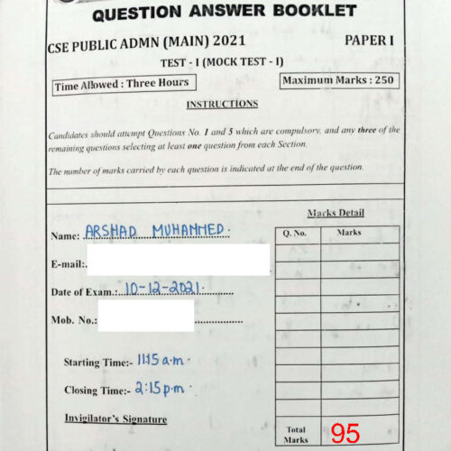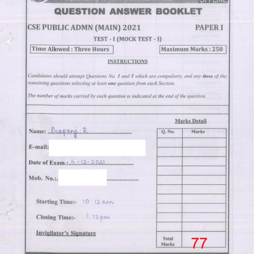 Lukmaan IAS Topper Copy Public Administration By Prapanj R (Air 523) English Medium 2021