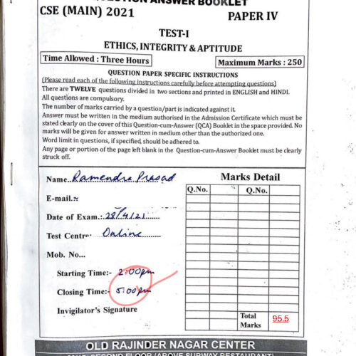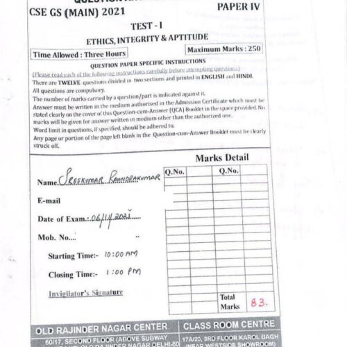 lukmaan Ias Ethics Topper’s copy 2021 English Medium Siddharth K Misra (Air – 255)