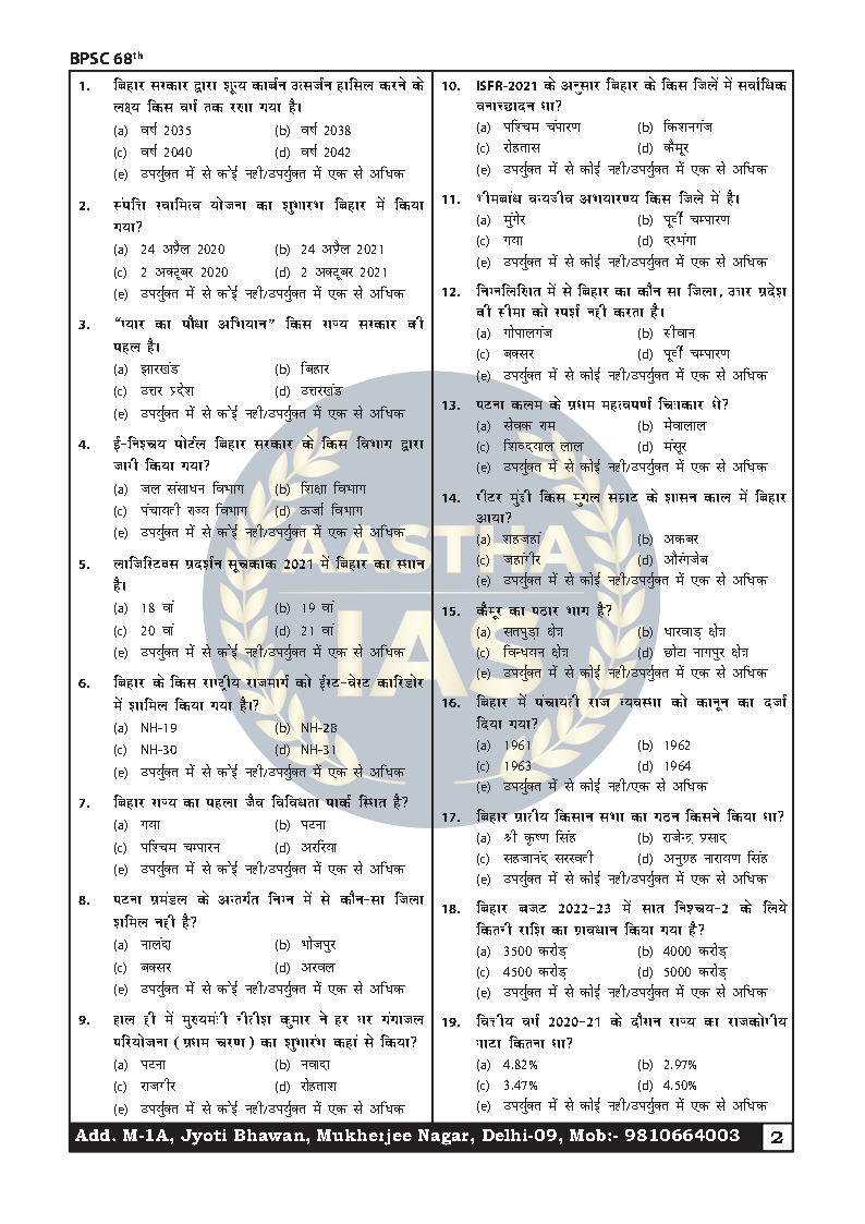 Aastha Prelims Test Series-1 To 13 68th BPSC 2023 BilingualÂ