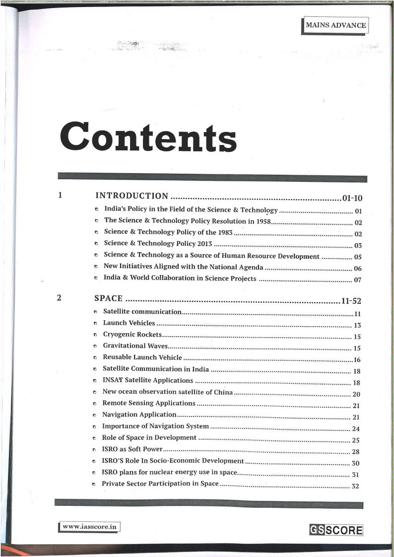 GS Score Science & Technology Printed Notes B/W GS Mains Part-1+2 English Medium