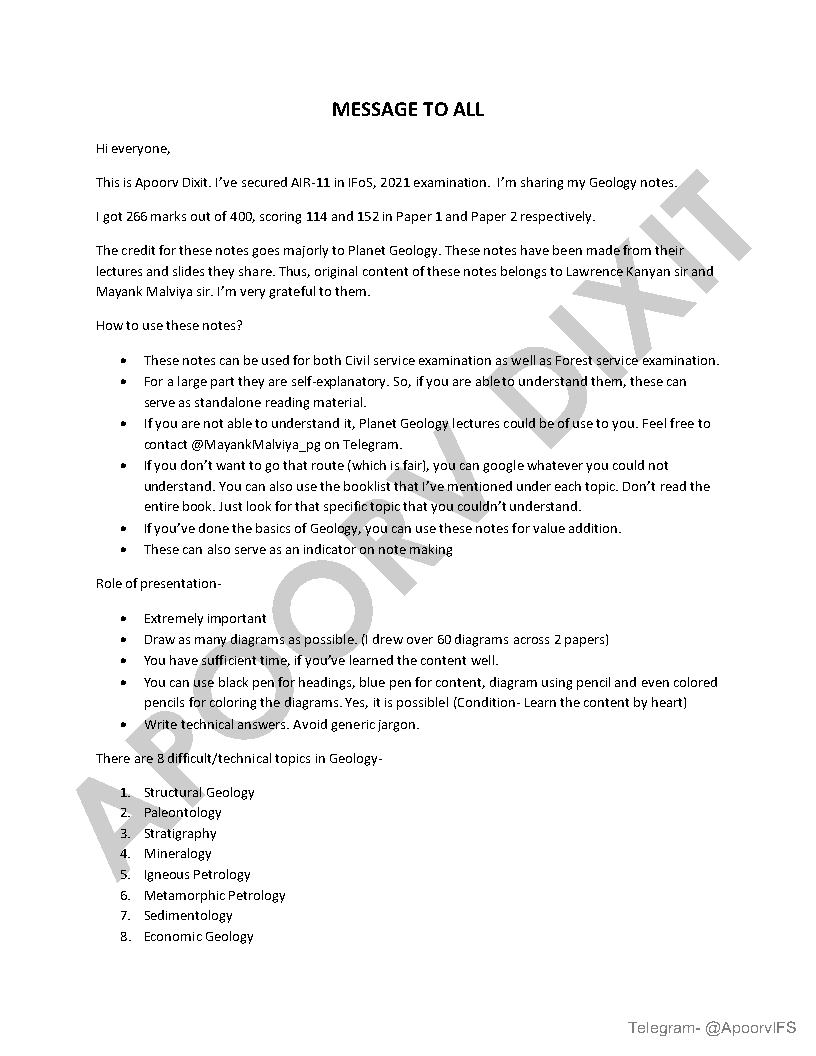 Topper Notes Upsc Geology Notes By Apoorv Dixit Rank 11, IFoS 2021 English Medium