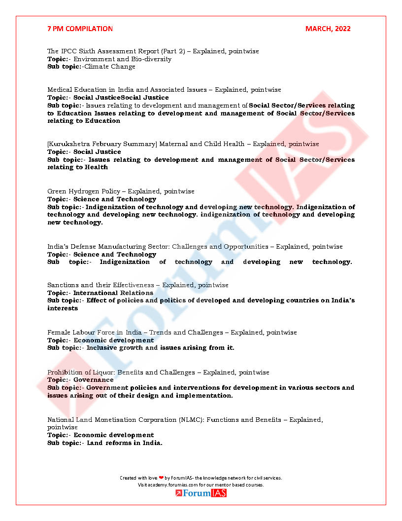 - Forum Ias Current Affairs	- Forum Ias 10PM Current Affairs Quiz Compiltions English Medium
