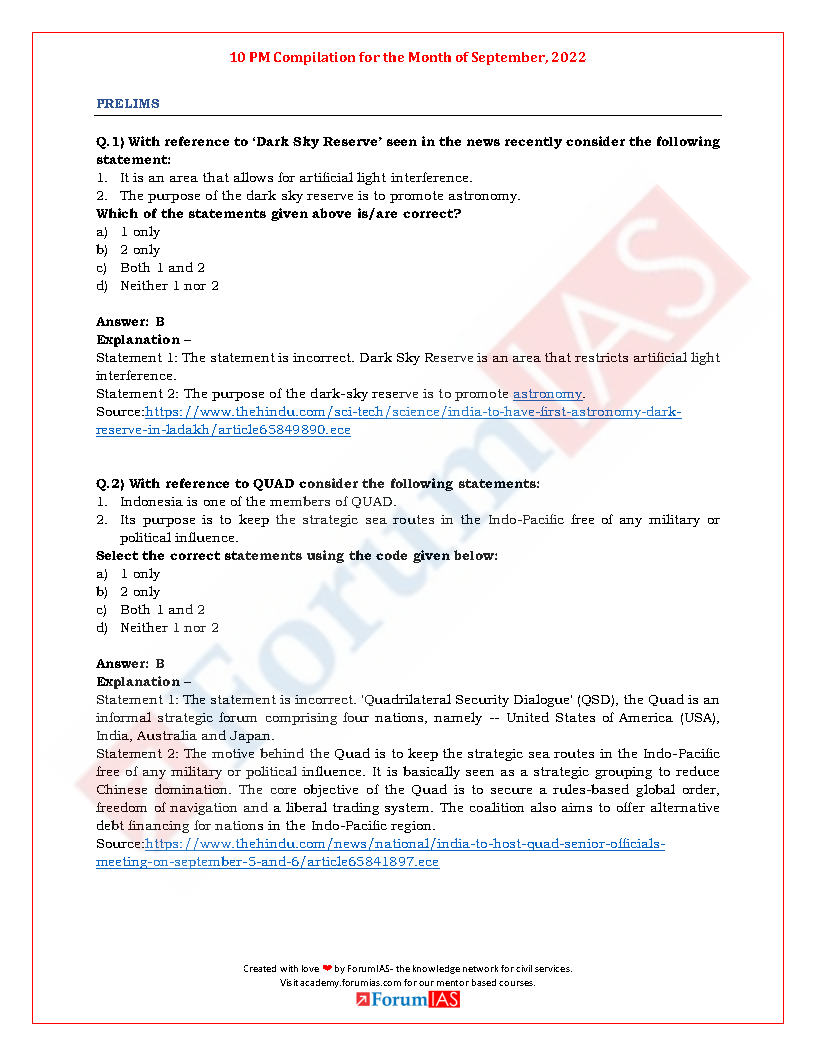 Product Tag: Forum IAS Monthly 10 PM Current Affair Quiz Compilation August 2022