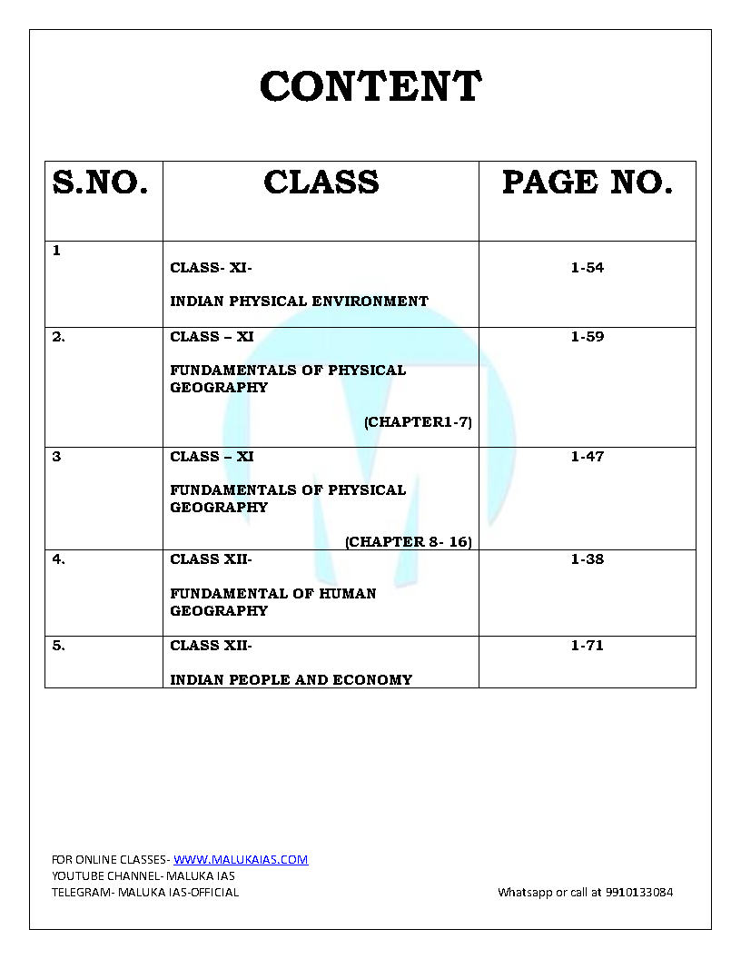 Maluka IAS Synopsis Of NCERT Geography Class VI-X English Medium(Xerox)