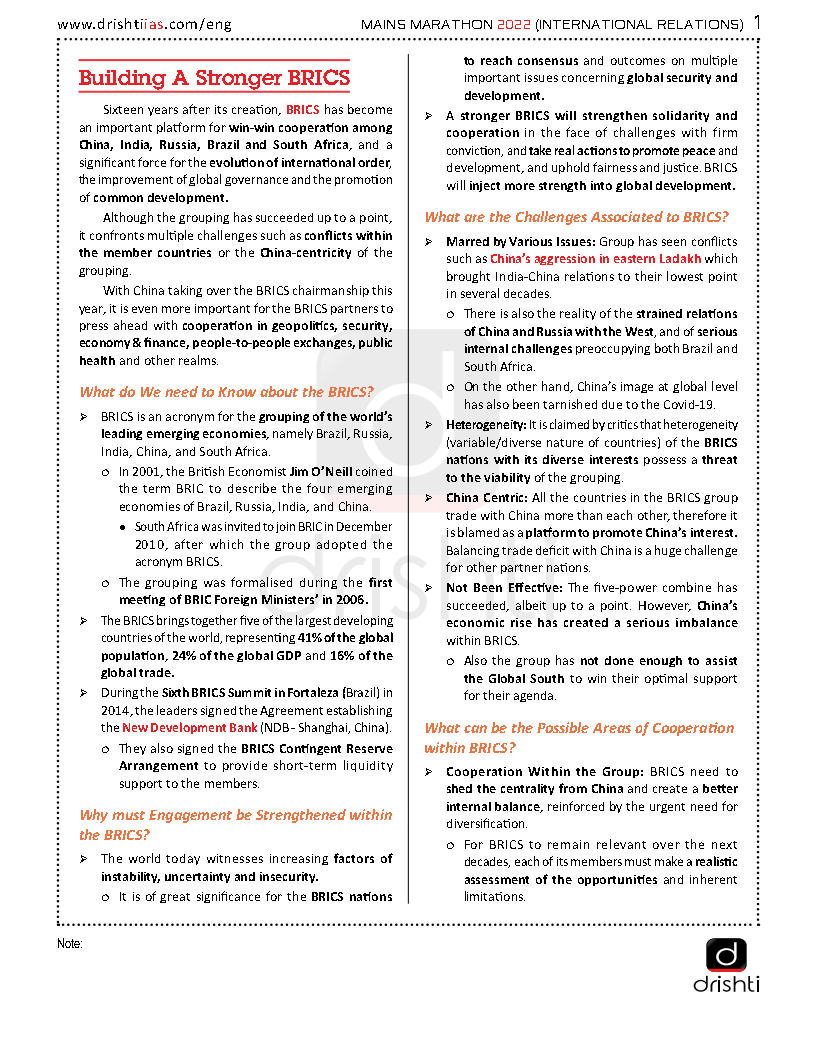 Drishti Ias Institute, Institutes, International Relations-IR, UPSC GS Notes, View All UPSC Notes & Books