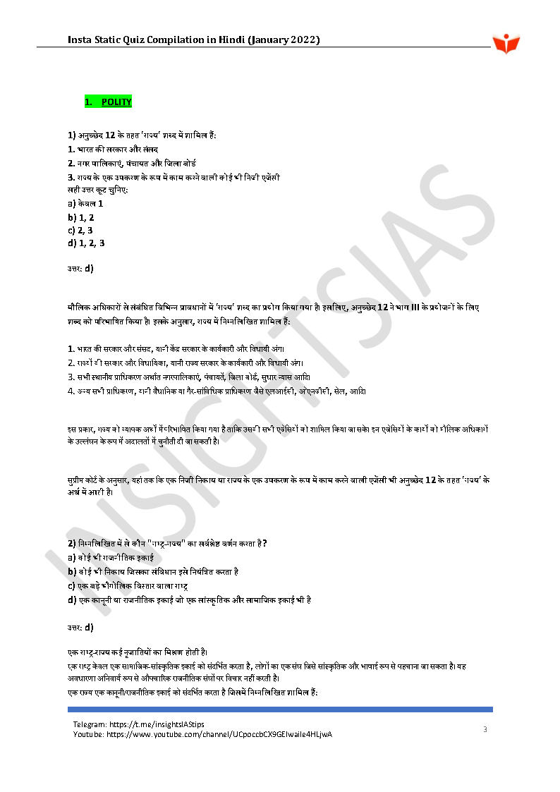 - Insights Ias Static Quiz Compilation Hindi Medium