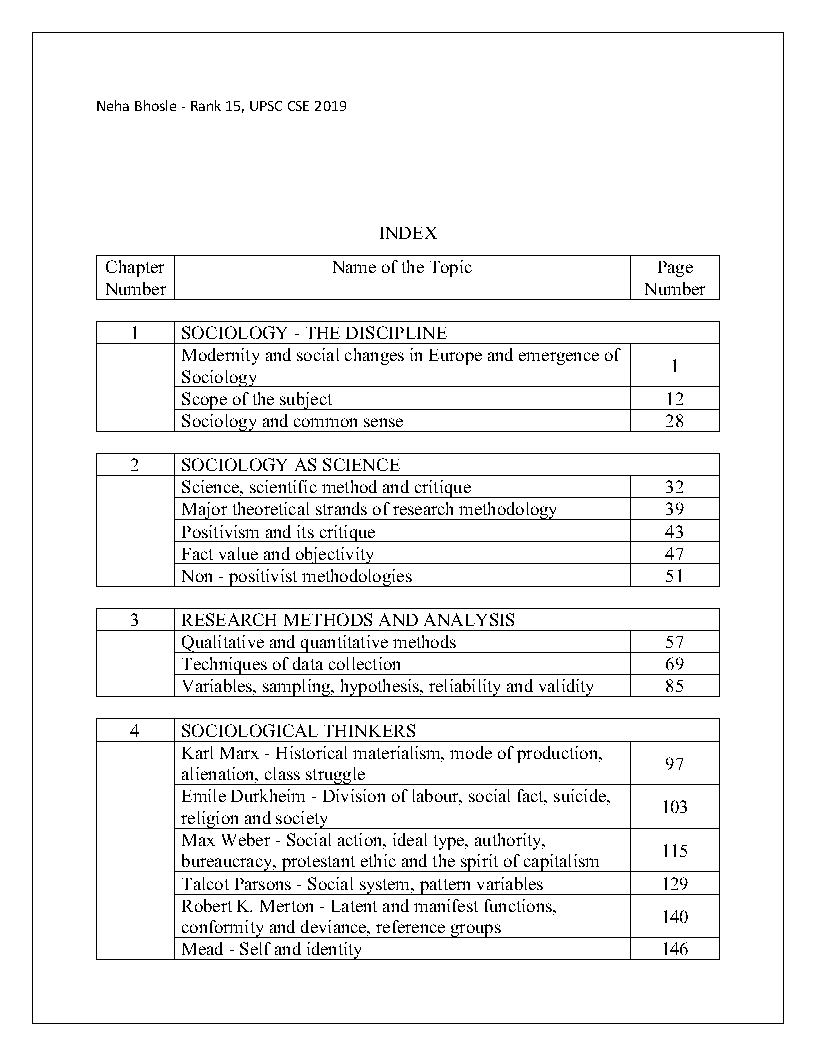 Toppers CSE 2019 Neha Bhosle Rank-15 Sociology Optional Printed Notes English Medium