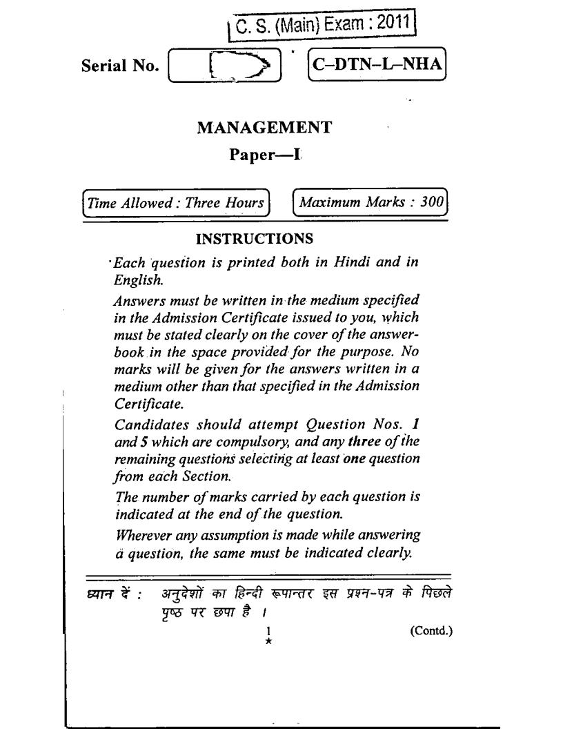 UPSC Mains Optional Management Previous Years Questions Papers I+II Bilingual 2011-24