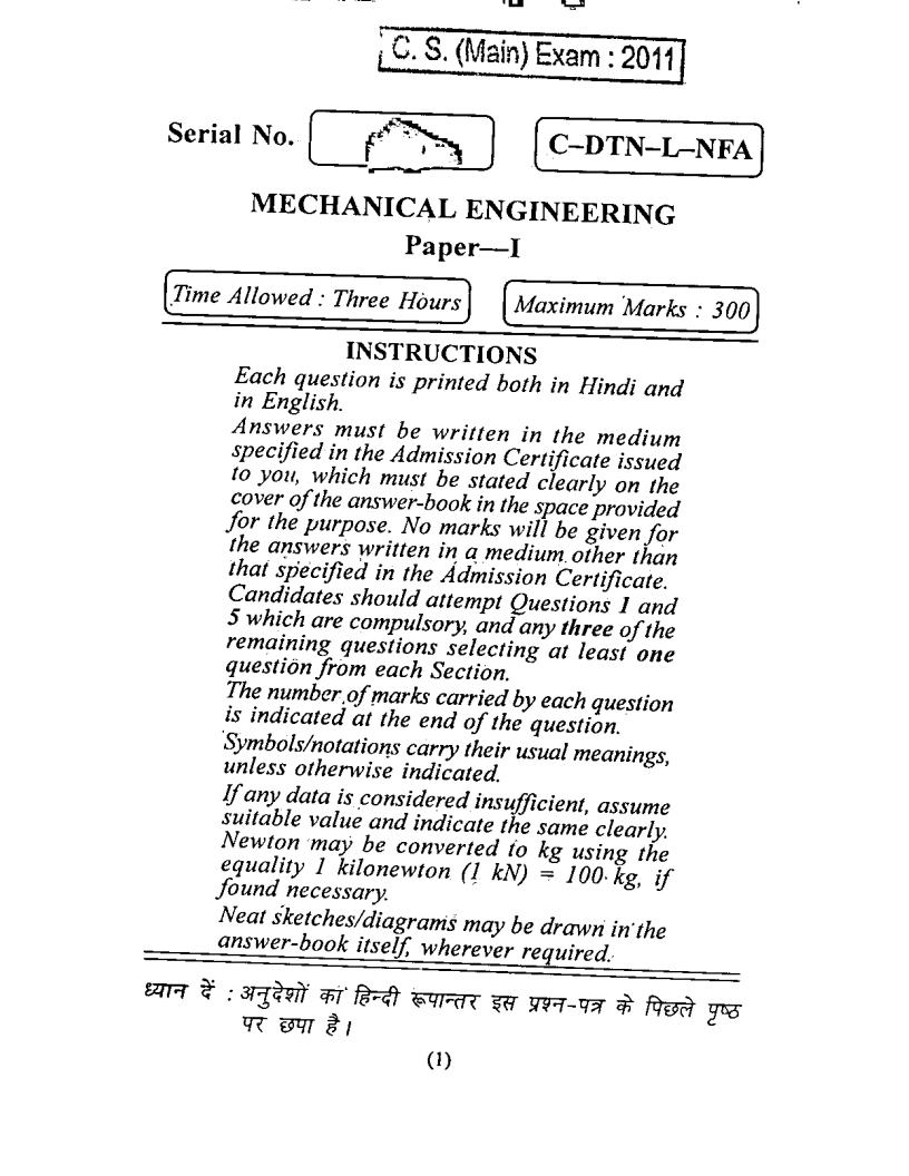 UPSC Mains Optional Mechanical Engineering Previous Years Questions Papers I+II Bilingual 2011-24
