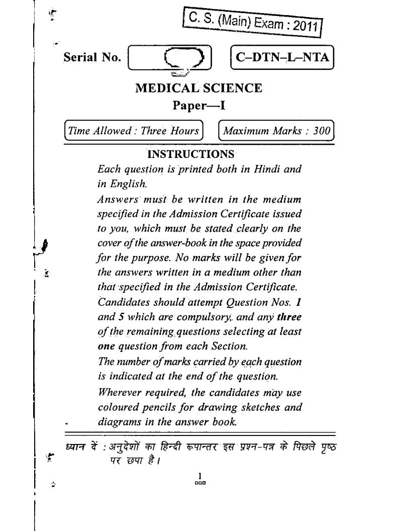 UPSC Mains Optional Medical Science Previous Years Questions Papers I+II Bilingual 2011-24