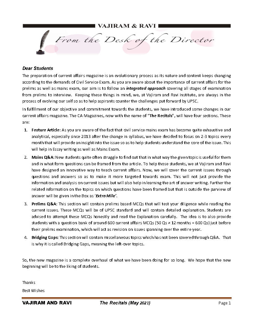 Vajiram And Ravi The Recitals Current Affairs May 2021 English Medium