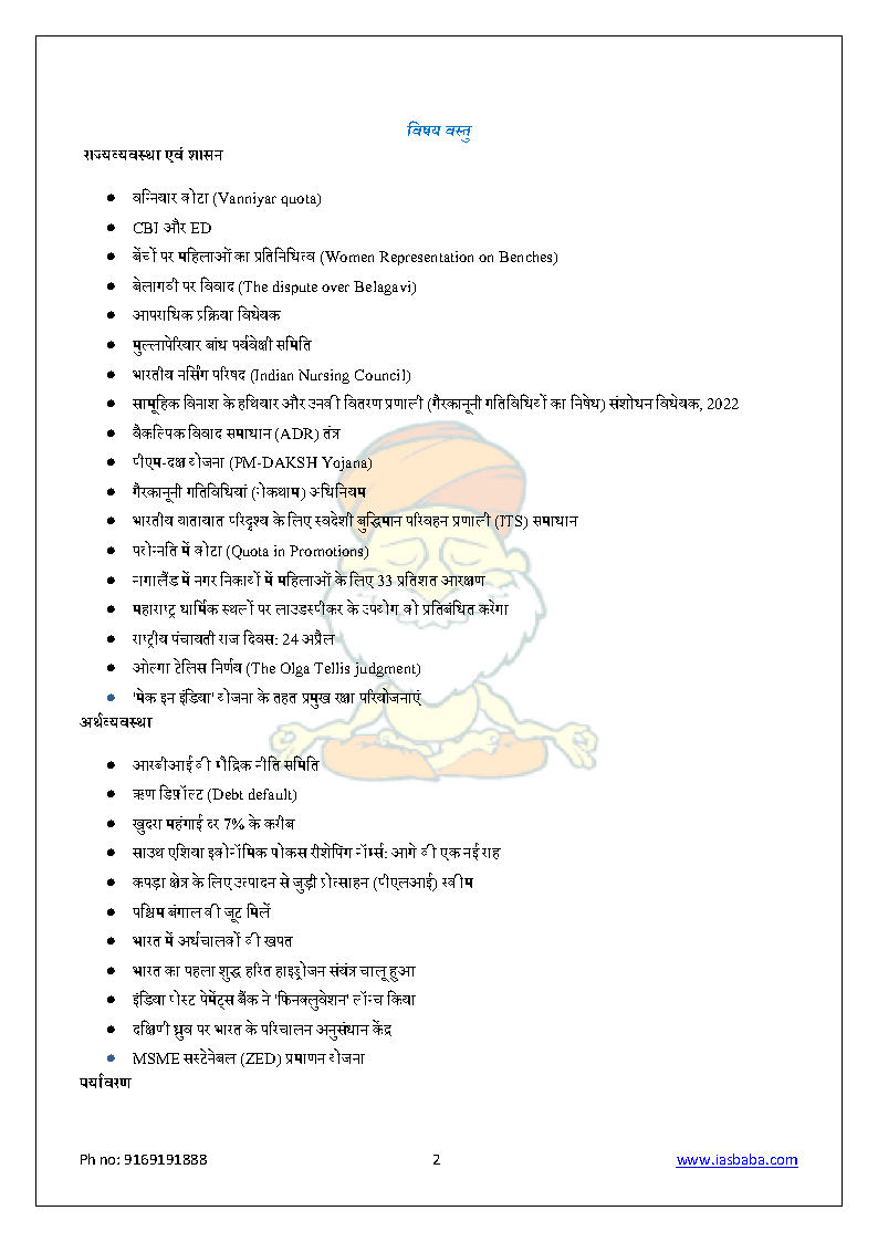 IAS Baba Monthly Magazine April Current Affair 2022 Hindi Medium