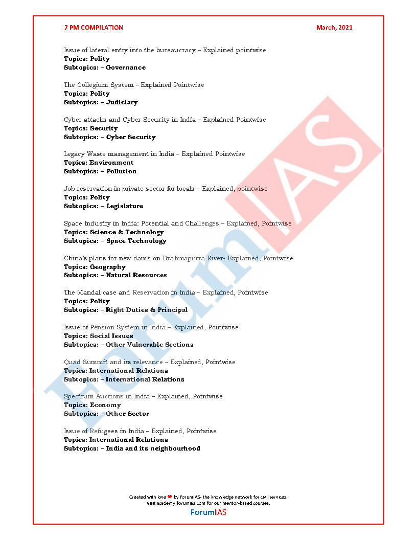 Table Of Content Indian History 1. Ancient India 2. Medieval India 3. History Of Modern India 4. World History 5. World Geography 6. Geography Of India 7. Census Of India:-2011 8. Indian Polity And Constitution 9. Indian And The World 10. Indian Economy 11. Physics 12. Chemistry 13. Biology 14. Ecology, Environment And Cilimate Change 15. Science And Technology 16. Computer 17. National And Itnernational Institutions 18. Sports 19. Indian: Miscellaneous 20. World : Miscellaneous 21. Flag, Capital, Area, Population And Currency Of Different Countries