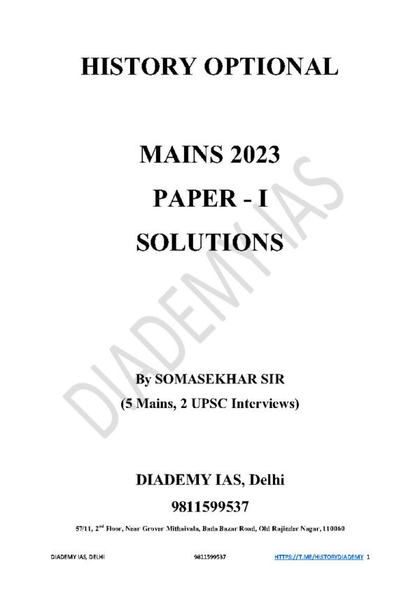 Diademy Ias History Optional 5 Years PYQ Previous Solutions Paper 1 & 2 English Medium