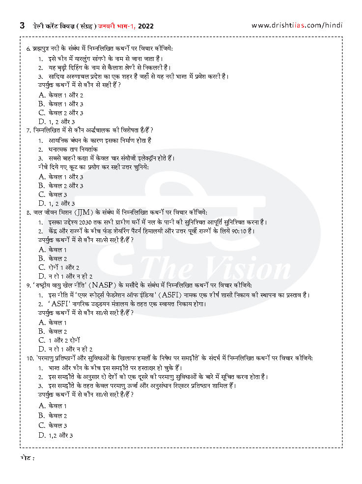 Drishti IAS Current Affairs Daily Current Quiz MCQ January Part I & II 2022 Hindi Medium