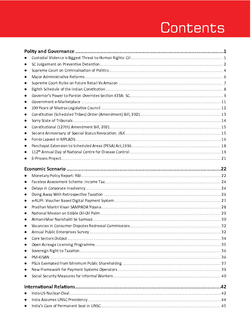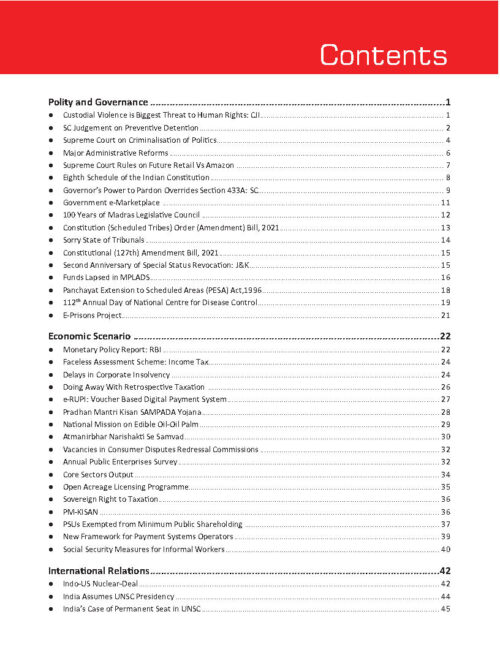 Drishti IAS Monthly Current Affairs Consolidation August Part (I) 2021 English Medium
