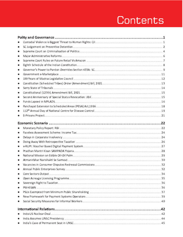 Drishti IAS Monthly Current Affairs Consolidation August Part (I) 2021 English Medium