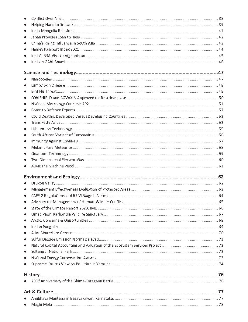 Drishti IAS Monthly Current Affairs Consolidation January Part (I) 2021 English Medium