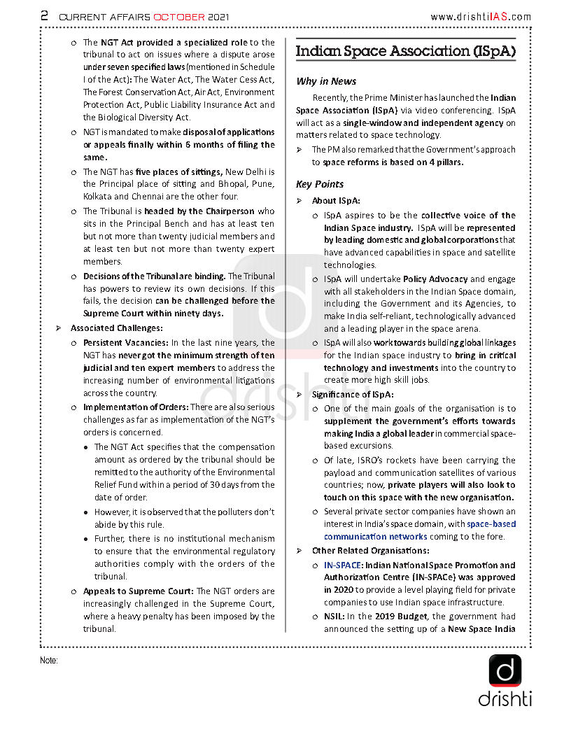 Drishti IAS Monthly Current Affairs Consolidation October Part (I) 2021 English Medium
