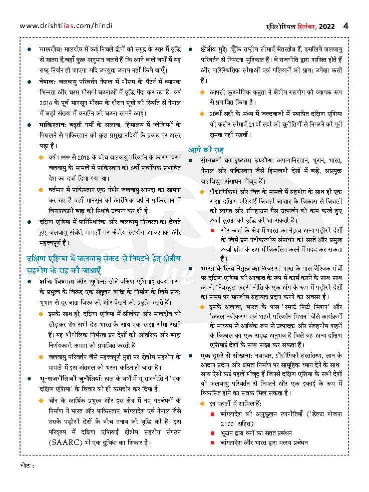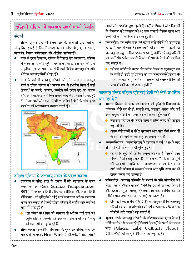 दक्षिणी-एक्िया में जलवायु सहयोग की स्थिक्ि