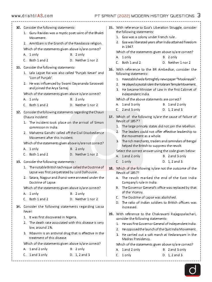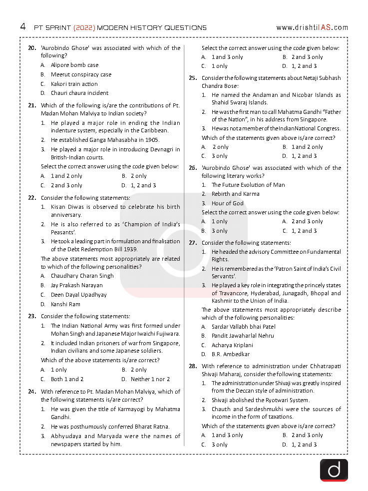 Drishti IAS Pt Sprint Modern History English Medium 2022