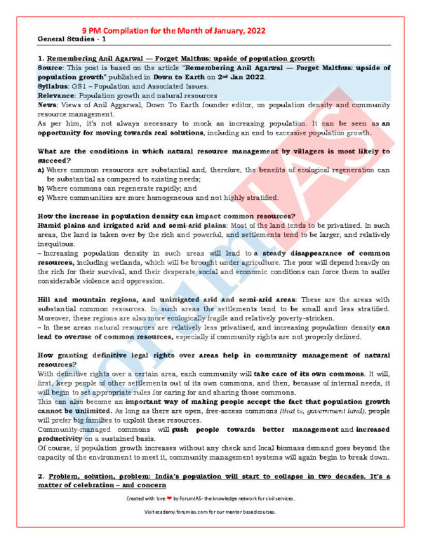 Forum Ias 9pm Compilation For The Month of January 2022 English Medium