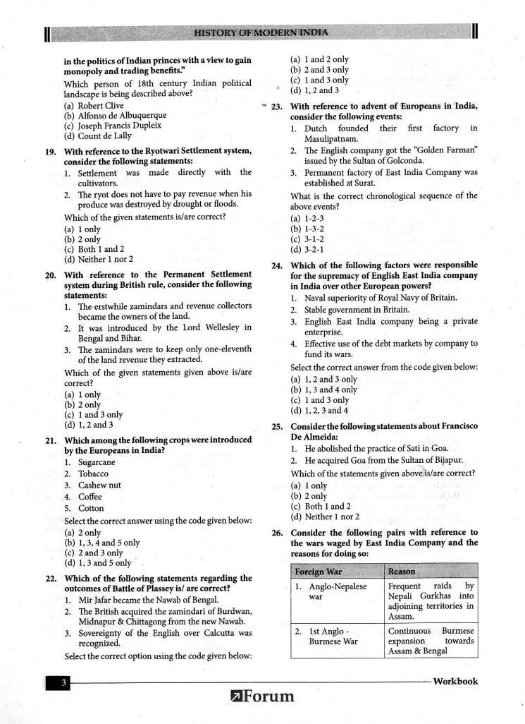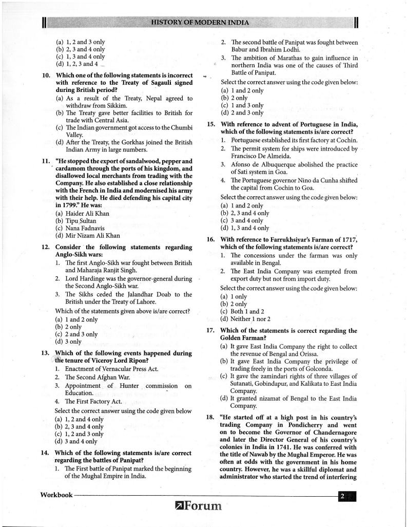 Forum IAS A Workbook Of History Of Modern India Printed Notes 2022 For Civil Services Prelims Examination English Medium