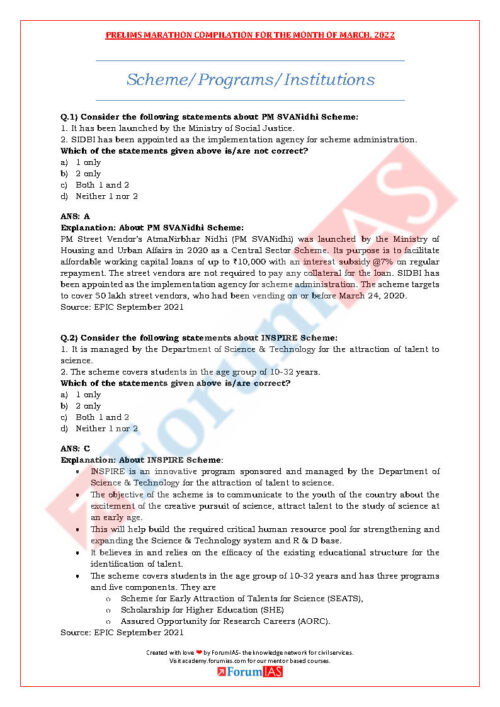 Forum IAS Compilation For The Month Of March 2022 Prelims Marathon English Medium Printed Notes
