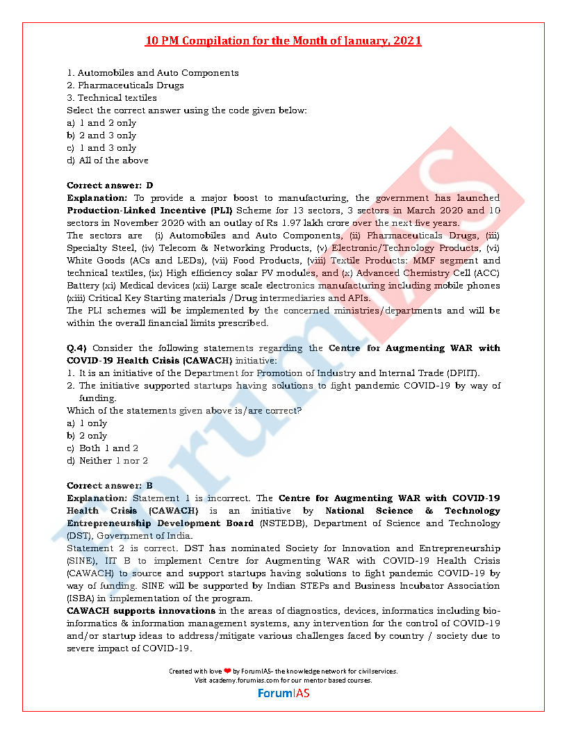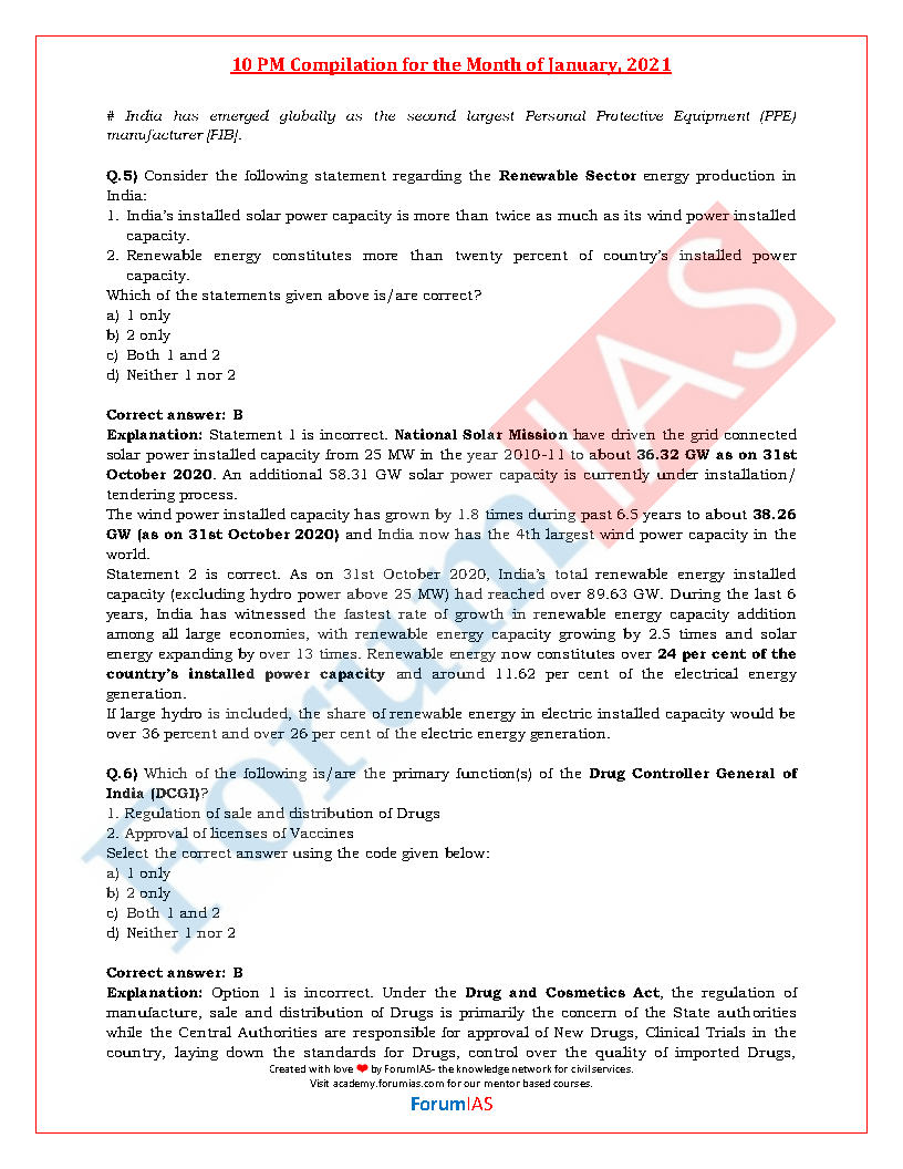 Forum Ias monthly 10 PM Current Affair Quiz Compilation January 2021 Printed Notes English Medium