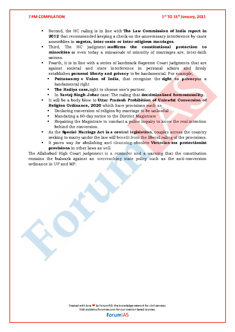 Forum Ias Monthly 7 PM Compilation Editorial January 2021 Printed Notes English Medium
