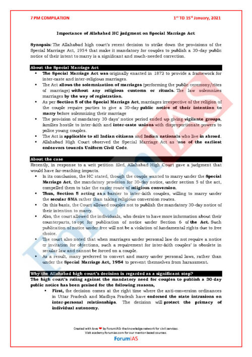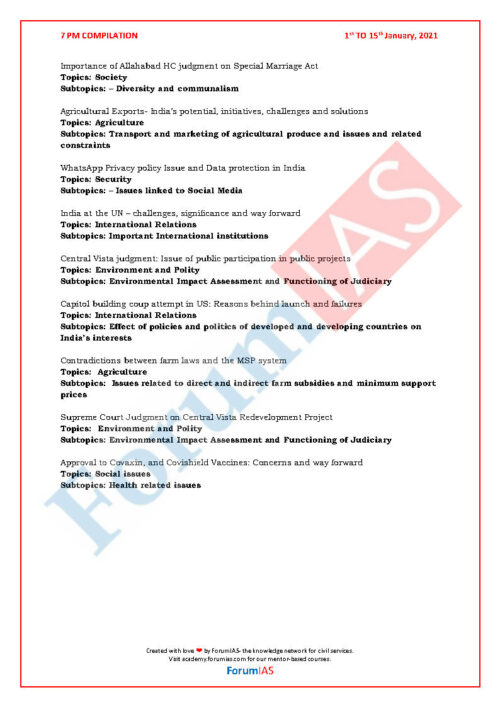 Forum Ias Monthly 7 PM Compilation Editorial January 2021 Printed Notes English Medium