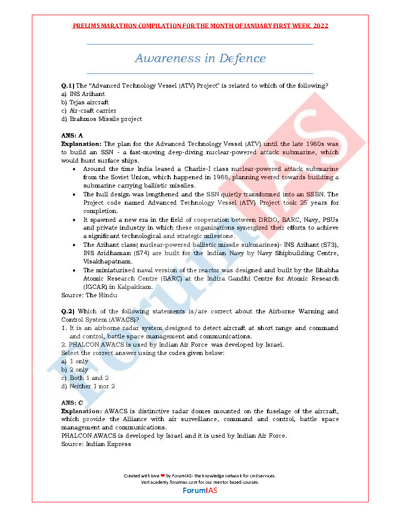 Forum Ias Prelims Marathon January 2022 English Medium Printed Notes