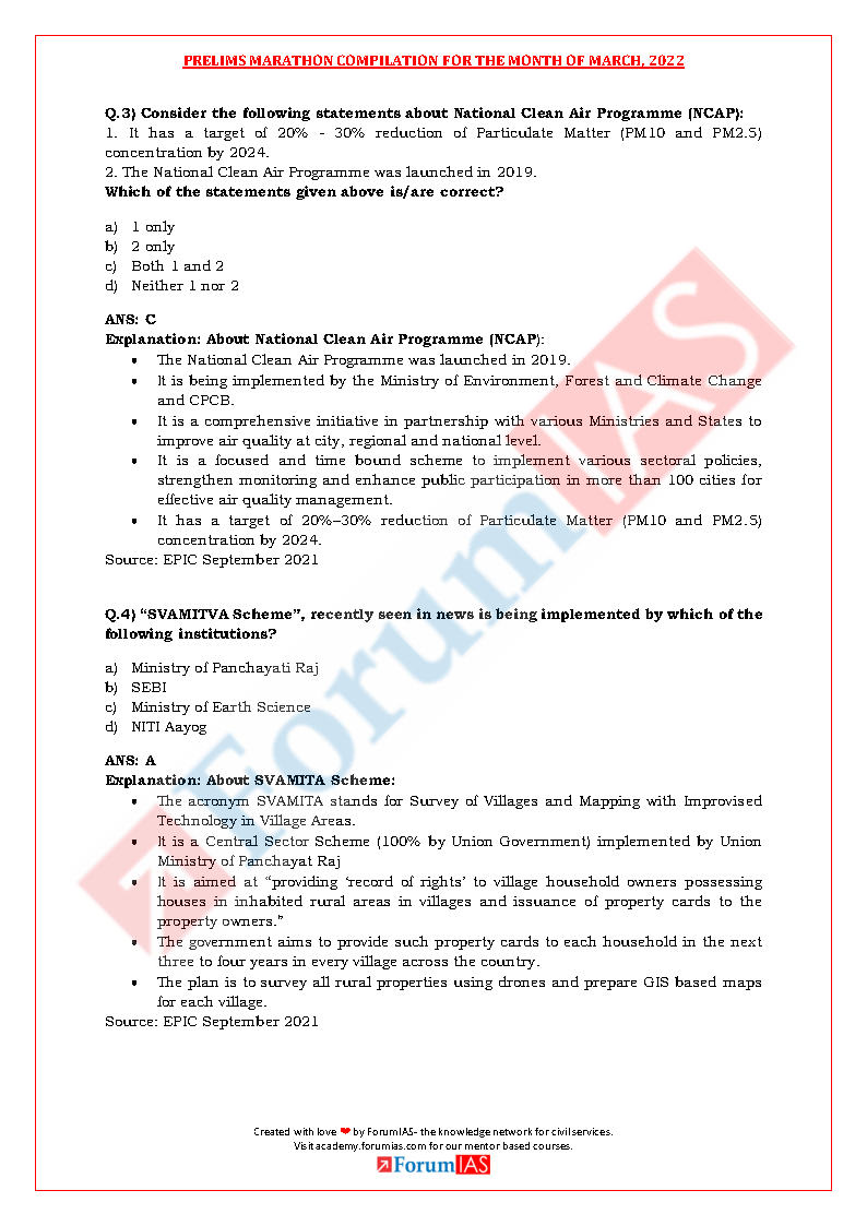 Forum Ias Prelims Marathon March 2022 English Medium Printed Notes