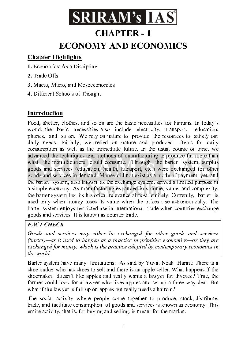 CHAPTER – 1 ECONOMY AND ECONOMICS