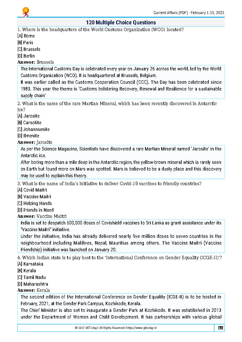 GK Today MCQ Compilation Feburary 2021 Printed Notes English Medium
