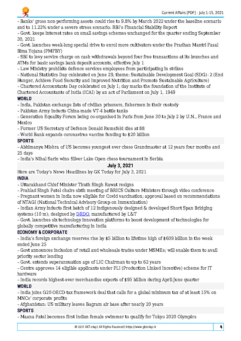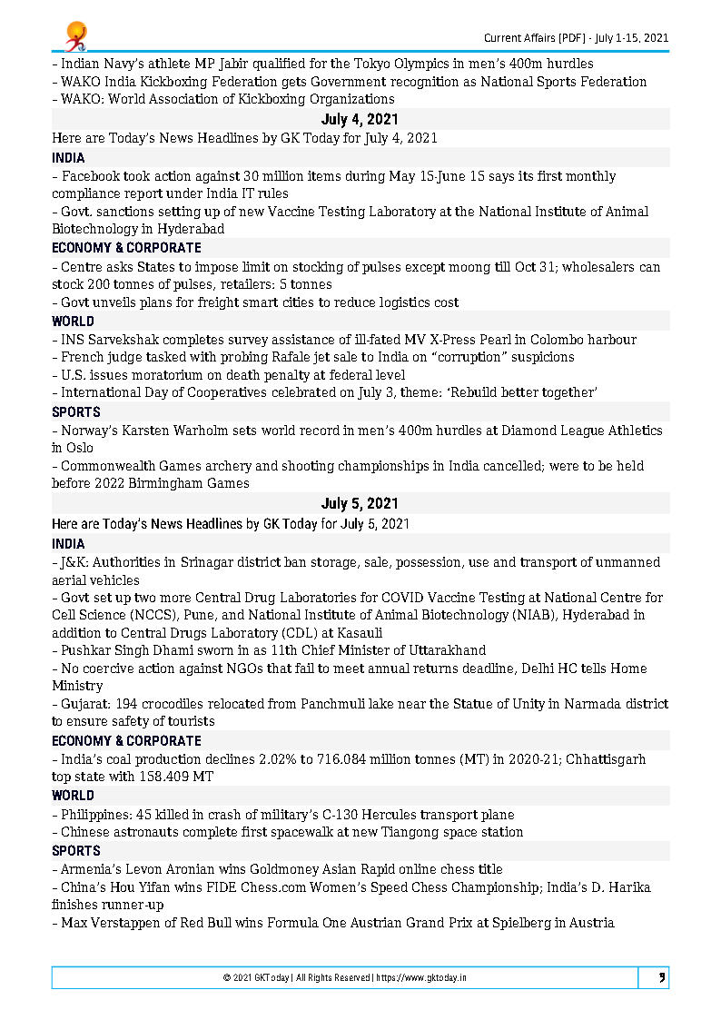 GK Today Monthly Current Affair July 2021 Printed Notes English Medium