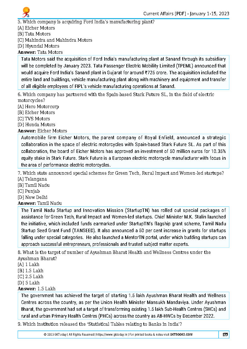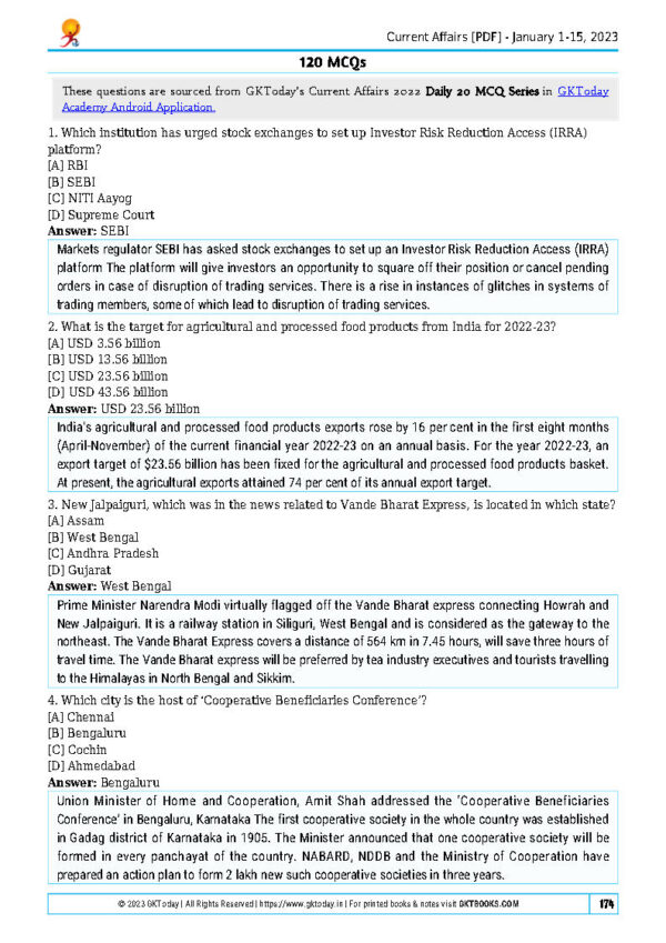 GK Today Monthly Current Affairs MCQ Compilation January 2023 Printed Notes English Medium