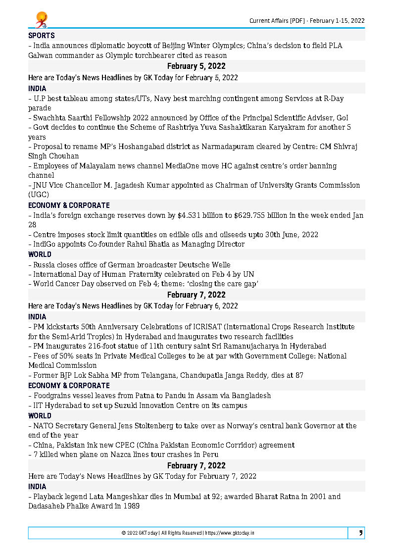 GK Today Monthly Magazine Current Affairs February 2022 English Medium