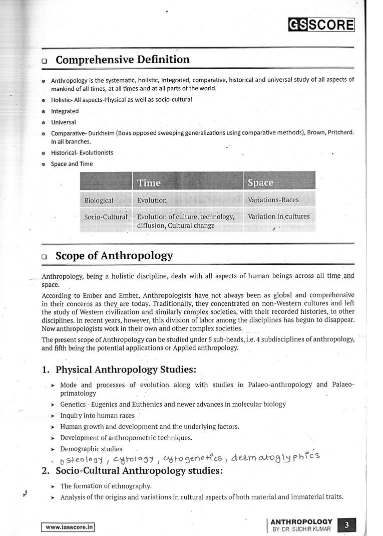 GS Score Anthropology Optional Foundation By Dr. Sudhir Kumar Printed Notes English Medium 2022