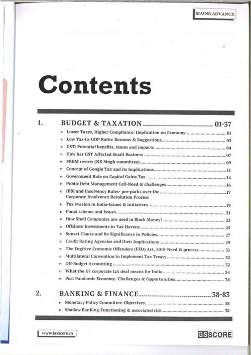 GS Score Indian Economy Printed Notes B/W GS Mains Part 1+2 English Medium