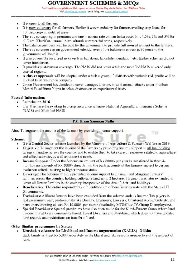 IAS 4 Sure Government Schemes Revision Notes For Prelims English Medium 2022