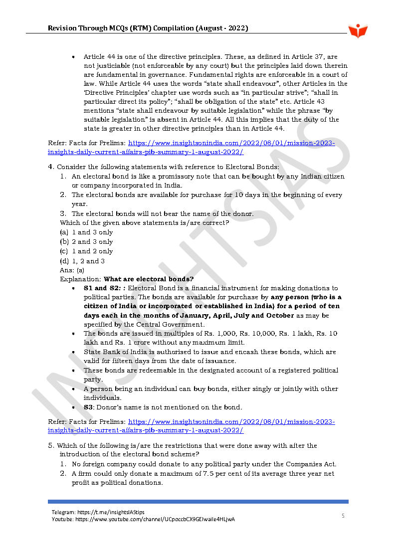 Insights IAS RTM Compilation Prelims August 2022 Printed Notes English Medium
