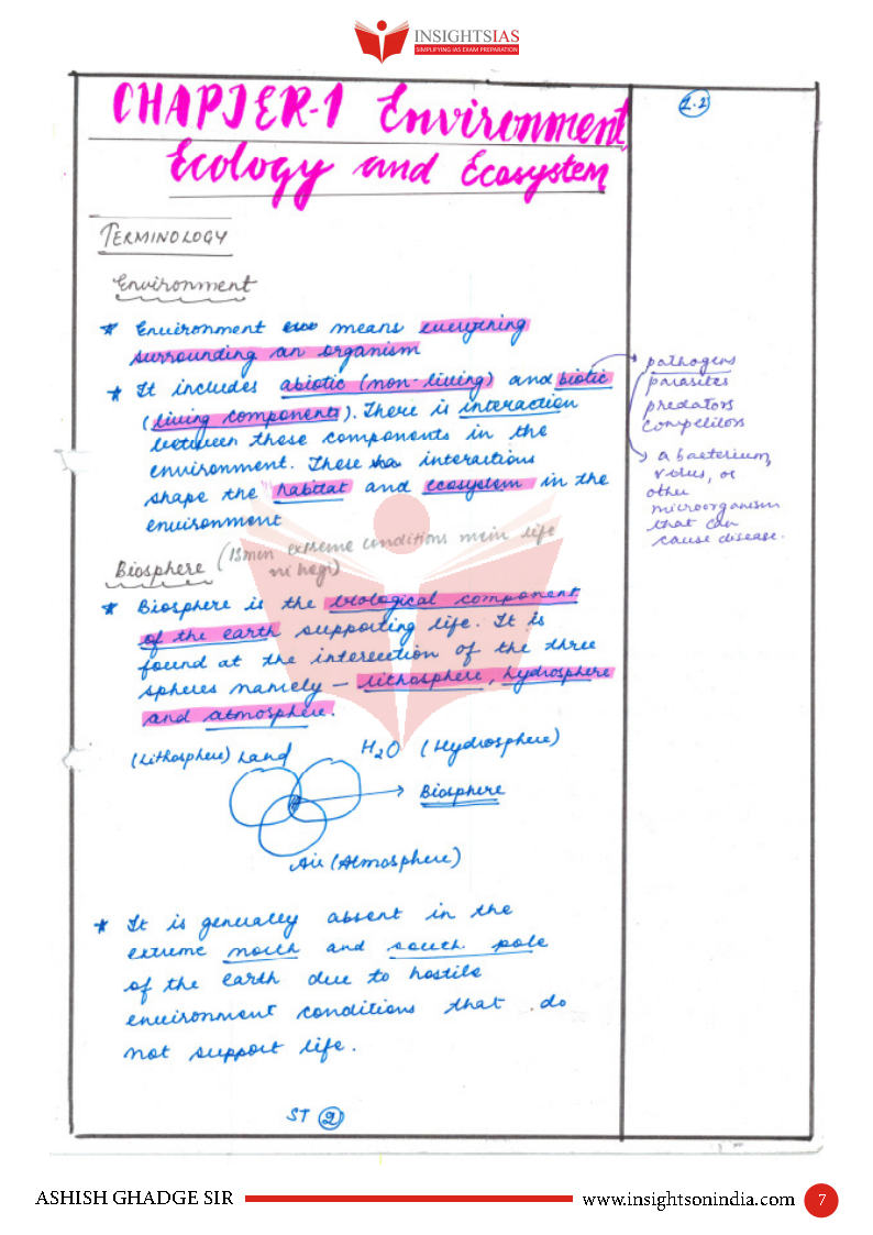 Insights IAS Environment & Ecology Classroom Handwritten Notes Integration Foundation Program By Ashish Sir English Medium 2023