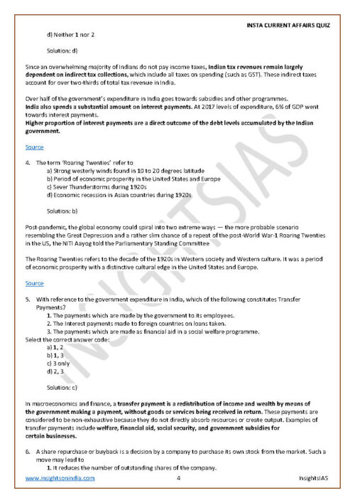 Insights IAS Insta Current Affairs Quiz Monthly Compilation January 2021 Printed Notes English Medium