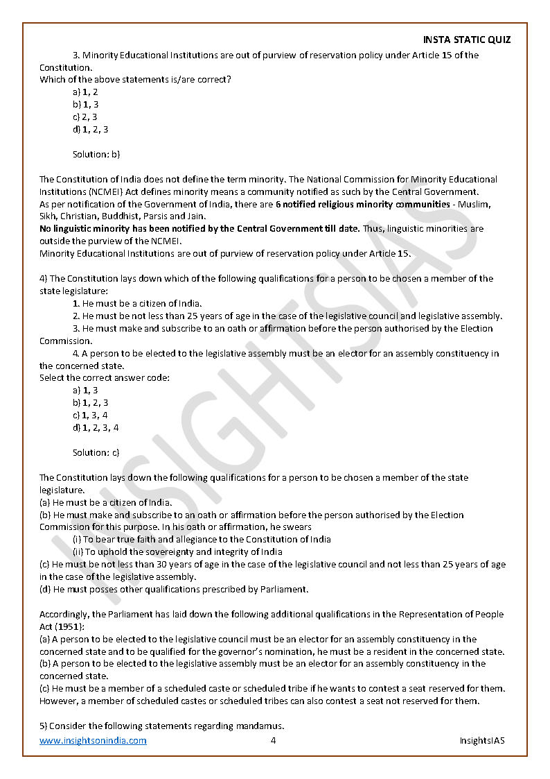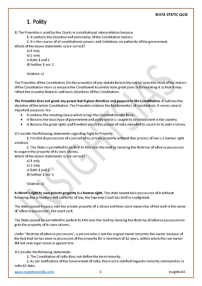 Insights IAS Insta Static Quiz Monthly Compilation June 2020 Printed Notes English Medium